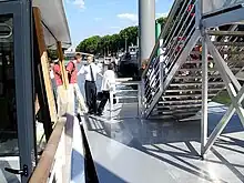 Les bateaux sont blancs avec quelques touches de noir et d'habillage de bois autour des fenêtres. Mais l'identité visuelle du service repose sur un large bandeau vert et bleu clair.
