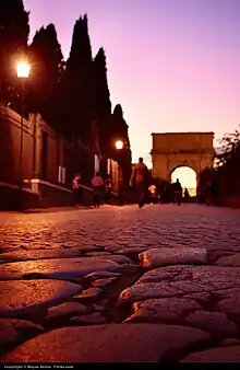 Montée de la Via Sacra depuis le Forum Romanum en direction de l'arc de Titus (Clivus Sacer). | ||