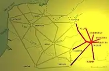 - L'étoile de Bavay, où sept voies se rejoignaient, reliant la Germanie et le port de guerre de Boulogne-sur-Mer, Amiens par Arras, Tongres, Cassel, Trèves à l’est et Reims au sud).