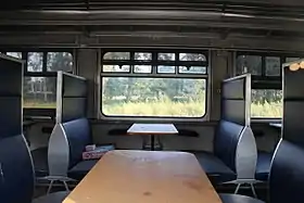 - Les B (ou B12) qui possédaient deux salles à trois travées de 29 places chacune encadrant deux plateformes et une salle à 6 travées de 56 places où une toilette prend la place d’un groupe de sièges, ce qui donne un total de 114 places assises.