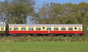 Diagramme 330. 27 voitures munies de deux toilettes au centre, de part et d'autre d'un couloir, ces voitures possèdent de part et d'autre deux salles de 40 places chacune[48]. Cinq sont préservées.