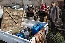 L'utilisation de véhicule piégés lors d'attentats-suicide s'est répandue au sein de l'organisation État islamique, ces armes apportant une puissance de feu conséquente en l'absence d'artillerie, et étant particulièrement difficiles à arrêter[50]. Le vocabulaire militaire leur donne le nom de « suicide vehicle-borne improvised explosive device », soit objet explosif improvisé placé dans un véhicule-suicide, souvent abrégé SVBIED, ou parfois de « véhicule suicide modifié », voire « véhicule-kamikaze ». Contre ce type d'armes, les lance-roquettes comme le RPG-7 se sont vite révélés inefficaces du fait de leur portée : des missiles antichars comme le AT-4 Spigot permettent de détruire les véhicules-suicide à une plus grande distance[51]. Des véhicules piégés de ce type ont notamment été utilisés à plusieurs reprises lors de la bataille de Mossoul[52],[53]. Les observateurs notent l'effet psychologique de ce type d'arme, notamment lors de la bataille de Ramadi lorsqu'elle est utilisée par vagues[54].
