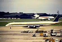 N794AL, le Douglas DC-8 impliqué dans l'accident, ici à l'aéroport international de Los Angeles en juin 1991. | |||