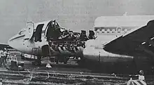Vue de l'avant droit du fuselage du 737 accidenté après la décompression explosive et l'atterrissage du vol 243.  | |||
