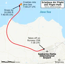Le , le Boeing 737-500 effectuant le vol Sriwijaya Air 182 à destination de Pontianak disparaît des radars quatre minutes après son décollage[1] de l'aéroport international Soekarno-Hatta de Jakarta (Indonésie), et s'écrase en mer de Java, à quelque 20 kilomètres (11 milles marins) au nord de l'aéroport[1].