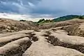 De la boue forme des « volcans ». On observe des remontées de gaz à la surface des cratères[2]. Autour des emplacements des volcans, le paysage est lunaire (les plantes ne s'habituent pas à la nature du sol) contrastant avec la région verdoyante.