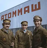 ![]() Des bâtisseurs de l'usine Atommach de Volgodonsk en 1977. |