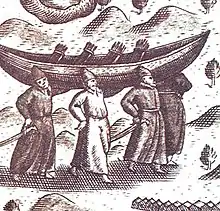 Toujours d'après l'encyclopédie, la superstition populaire considérait le Volok, lieu de portage, comme un lieu impur et maudit, où se trouvaient les tombes de coquins ou de bogatyrs maléfiques. Quiconque passait le volok était obligé de jeter en offrande des branches d'arbres, des pierres, du foin et, en un mot, tout ce qui était disponible, et plus encore c'était mieux[2]. « Volok » au sens d'une zone ou d'une étendue forestière se trouve dans tout le nord de la Russie. La forêt le long de la rivière Ilet, qui se jette dans la Volga par le nord, légèrement au-dessus de Kazan, s'est appelé Volok d'Ilet. Utilisé dans ce dernier sens, Volk a donné son nom à de nombreux villages et villes, lacs et districts qui s'y trouvaient ou à proximité. Dans la nomenclature géographique actuelle, des lieux portant le nom de volok se trouvent dans l'espace allant des cours supérieurs de la Dvina occidentale, du Dniepr et de la Volga au nord de la Dvina ((два Волочка, Волоковое, Волочки, Волока, etc.), sur les côtés droit et gauche de la Volga (Волок-Ламский, Волокославинское, etc.)), et dans le bassin de la Dvina septentrionale (Подволочье et Волочки)[2].