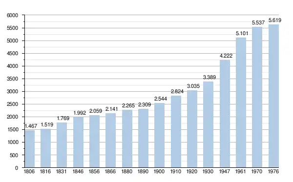 - Sources : INS, Rem. : 1831 jusqu'en 1970 = recensements, 1976 = nombre d'habitants au 31 décembre[2].