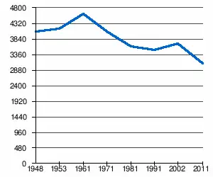 En 2002, l'âge moyen de la population était de 39,8 ans pour les hommes et 43,8 ans pour les femmes[6].