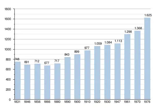 - Sources : INS, Rem. : 1831 jusqu'en 1970 = recensements, 1976 = nombre d'habitants au 31 décembre[2].