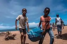 Enfants nettoyant la plage de Vridi.