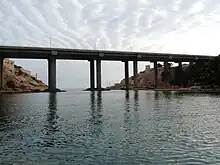Route à quatre-voies enjambant l'embouchure du Wadi Shab