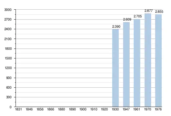 Les chiffres des années 1831 à 1970 tiennent compte des chiffres des anciennes communes fusionnées.