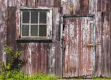 Fenêtre et porte d'un garage abandonné à Walden. Aout 2016.