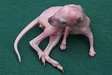 Le wallaby bicolore présente une forme inhabituelle de diapause embryonnaire, qui se distingue des autres marsupiaux par le fait que sa période de gestation est plus longue que son cycle œstral[1]. Cette synchronisation permet aux femelles wallaby bicolore de chevaucher deux grossesses, en mettant en gestation un embryon et un fœtus en même temps. Le wallaby bicolore ovule, s'accouple, conçoit et forme un nouvel embryon un à deux jours avant la naissance de son fœtus à terme. Les femelles sont donc continuellement enceintes tout au long de leur vie reproductive[2]. Le wallaby, comme le kangourou, possède deux utérus[3],[4].