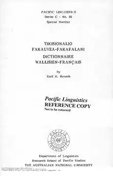 - Karl H. Rensch, Tikisionalio Fakauvea-Fakafalani. Dictionnaire wallisien-français, , 439 p. (lire sur Wikisource, lire en ligne)