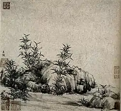 - Bambou et rochers, encre sur papier, rouleau en hauteur.
