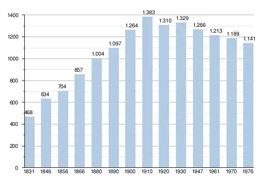 - Sources : INS, Rem. : 1831 jusqu'en 1970 = recensements, 1976 = nombre d'habitants au 31 décembre.