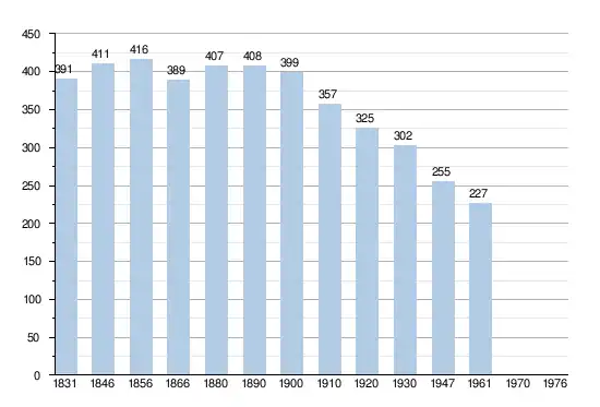 - Sources:INS, Rem:1831 jusqu'en 1970=recensements, 1976= nombre d'habitants au 31 décembre