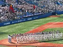 La série de matchs de baseball qui se tient deux fois par an, au printemps et à l'automne, entre l'université Waseda et celle de Keiō, appelé Sōkeisen (早慶戦), est la manifestation la plus visible de la rivalité entre ces deux universités, dont il est le point d'orgue. Il prend pour cadre le Tokyo Big 6, tournois regroupant six grandes universités de Tokyo. Il se déroule toujours au Meiji Jingu Stadium habituellement utilisé par l'équipe professionnelle des Tokyo Yakult Swallows. Le tournoi est considéré comme la plus importante compétition par les deux corps estudiantins ; jusqu'à 50 000 étudiants s'y rendent pour y soutenir leurs joueurs[75]. Waseda et Keiō organisent par ailleurs une fois par an une régate sur la rivière Sumida à l'est de Tokyo[76]