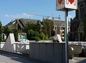 - Le Centre (appelé Le Village en 1876), est le lieu de la ville où sont centralisées les plus hautes fonctions. Plusieurs églises se sont succédé sur l'actuelle Place Maurice-Schumann depuis le IXe siècle[43],[44]. Le quartier du centre possédait les deux voies les plus longues de la ville avec le chemin vicinal dit du Pavé du Heule (cette voie comprenait la rue Jean Macé, la rue Jean Jaurès, la Rue Pasteur, la place Gambetta, l'avenue du Molinel, la rue du Triez, l'avenue du Grand Cottignies, la rue du Molinel et la rue Albert Bailly) et la rue Jean-Bart (jusqu’à la moitié du XXe siècle, la rue Jean Bart comprenait la rue Léon Jouhaux, la rue du Haut Vinage et la rue Faidherbe), voie la plus ancienne de la commune qui se présentait il y a deux cents ans, comme un chemin pavé sinueux, environné de jardins et de prairies. La double rangée d’ormes était si haute qu’elle ne permettait pas de découvrir le village avant d’avoir atteint ses premières habitations.