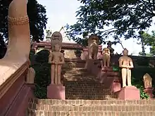 Sur le côté Est de la colline, un grand escalier encadré par deux nâgas mène à l'entrée principale du wat.