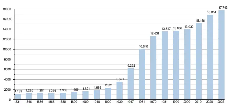 - Source : DGS, de 1831 à 1981 = recensements population ; à partir de 1990 = nombre d'habitants chaque 1er janvier.