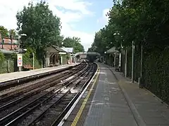 La station West Finchley, de la branche High Barnet de la ligne Northern du métro de Londres, est située entre les stations Woodside Park, en direction du terminus nord High Barnet, et Finchley Central en direction du terminus sud Morden. Elle dispose des deux voies de la ligne encadrées par deux quais latéraux, numérotés : 1 et 2[1].