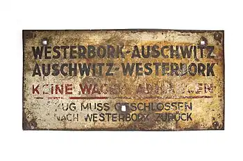 Au total, 100 657 personnes sont déportées depuis le camp de transit de Westerbork[17]. Le premier train de la déportation part pour Auschwitz le , avec à son bord 1 137 prisonniers, dont l'écrasante majorité sont des réfugiés juifs ayant fui l'Allemagne, l'Autriche ou la Pologne[18]. En tout, 93 convois transporteront 55 000 Juifs vers Birkenau, 34 000 Juifs vers Sobibor, 4 000 vers Bergen-Belsen et environ 5 000 vers Theresienstadt[19]. Jusqu'à août 1943, la principale destination des trains était Auschwitz, après cette date, c'est Sobibor qui devient la principale destination[19]. A l'été 1942, les détenus parcourent à pied la distance qui sépare le camp de la gare de Hooghalen[20], mais dès le mois de novembre 1942, les trains partent directement du camp de Westerbork, la voie ferrée ayant été prolongée jusqu'au camp spécialement dans ce but[6]. Le dernier convoi date du [21]. Le quai d'embarquement du train à Westerbork est surnommé «Boulevard des misères » par les détenus[22].