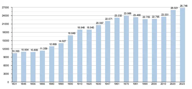 - Source : DGS - Remarque: 1831 jusqu'à 1981=recensement; depuis 1990=nombre d'habitants chaque 1er janvier[5]