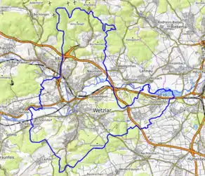 La ville de Wetzlar est divisée en huit quartiers (Ortsteil) et douze circonscriptions (Stadtbezirk):