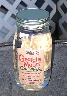 Un récipient de whisky de maïs de marque Georgia Moon.