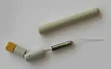 - le dipôle ressemblant à un stylo est l’antenne tige basique (¼ d’onde) la plus rencontrée. Il est omnidirectionnel, et est destiné à la desserte de proximité. Il équipe aussi certains modèles de caméras sans fil numériques Wi-Fi à 2,4 GHz (conformes CE) permettant une PIRE (Puissance Isotrope Rayonnée Équivalente) maximale autorisée de 100 mW, 20 dBm (D standard indicatif = 500 m à vue).