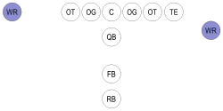 - Slot receiver (Y ou SL) : Un nom moins formel donné à des receveurs en plus des split end et des flankers. Ces receveurs s'alignent entre le split end/flanker et les linemen. S'il se trouve du côté du flanker, le slot receiver est habituellement sur la ligne de mêlée, et s'il se trouve du côté du split end, en deçà de la ligne de mêlée (slot). Tout comme le flanker, le slot receiver prend souvent une position reculée pour éviter le blocage[1].