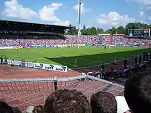 La zone debout pour les supporters du KSC est passée de la tribune opposée le long du terrain[5] derrière le but sur la tribune Sud. La zone réservée aux spectateurs visiteurs, qui se trouvait dans l'ancien Wildpark dans le coin sud-est, se trouve maintenant dans le coin nord-est. Un pont a été construit derrière la zone réservée aux visiteurs leur permettant d'accéder directement au nouveau parking visiteur.