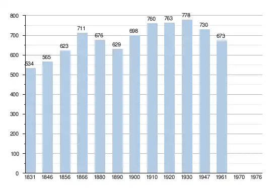 - Sources : INS, Rem. : 1831 jusqu'en 1970 = recensements, 1976 = nombre d'habitants au 31 décembre.