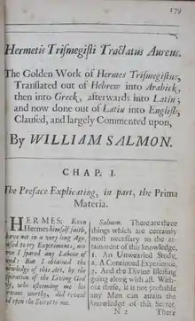William Salmon publia en 1671 un ouvrage en trois volumes intitulé Synopsis Medicinæ, or a Compendium of Astrological, Galenical, and Chymical Physick. Le premier volume est dédié au Dr Peter Salmon, médecin aisé de l'époque ; le troisième à Thomas Salmon de Hackney, mais l'auteur n'indique aucune relation de parenté avec l'un ou l'autre. Des versets élogieux, dont un de Henry Coley, présentent cet ouvrage comme une combinaison admirable d'Hermès, Hippocrate, Galien et Paracelse. Une deuxième édition a été publiée en 1681, suivie d'une réimpression en 1685 et d'une quatrième édition en 1699.