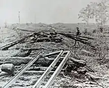 L'avance de Sherman à travers la Géorgie et la Caroline du Sud se caractérise par d'importantes destructions des approvisionnements et des infrastructures civiles. Bien que le pillage soit officiellement interdit, les historiens sont en désaccord sur la façon dont cette réglementation était appliquée[74]. La rapidité et l'efficacité des destructions causées par l'armée de Sherman sont remarquables. La technique développée pour plier les rails de chemin de fer autour des arbres ou des poteaux télégraphiques, qui laisse sur place ce que l'on nomme à l'époque des cravates de Sherman, rend les réparations très difficiles. Les accusations de crimes de guerre lors de la marche vers la mer et les allégations selon lesquelles des civils auraient été pris pour cible font de Sherman une figure aujourd'hui controversée, en particulier dans le sud des États-Unis.