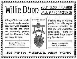 Son premier poste professionnel était au Ardsley Country Club, Ardsley, New York, où il a conçu le cours et s'est installé dans une entreprise de création de clubs en 1896. Il a été rejoint par son neveu, John Duncan Dunn, qui a émigré d'Angleterre où il avait été engagé avec la firme Dunn Brothers. Les clubs produits par les Dunns offraient un mélange intéressant de valeurs écossaises traditionnelles et d'ingéniosité moderne. Les premiers clubs de l'époque Ardsley ont été importés d'Écosse et assemblés à New York. Certains de ces fers portent une petite marque d'aigle, une référence à sa nouvelle maison et ont peut-être été forgés par Robert Condie. D'autres étaient simplement marqués "Dunn Selected" en caractères ou en lettres moulées et datés de 1897-1903[5].