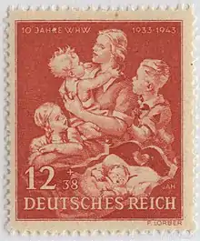 Timbre postal de propagande représentant la Winterhilfswerk, 1943.