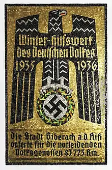 La Winterhilfswerk des Deutschen Volkes Secours d'hiver du peuple allemand » en français), communément connu sous sa forme abrégée Winterhilfswerk (WHW), était une campagne annuelle du Parti nazi pour aider à financer des activités de bienfaisance. Son slogan était « Nul affamé ni congelé ». Cette campagne a été initialement mise en place sous le gouvernement de Heinrich Brüning en 1931, bien que Hitler allait plus tard la revendiquer[1]. Elle a existé de 1933 à 1945, d'octobre à mars. Elle visait à fournir de la nourriture, des vêtements, du charbon et d'autres articles à des Allemands moins fortunés pendant les mois les plus rigoureux.