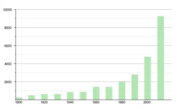 | 1960 | 1 418 | ▲ +62,99 % | |