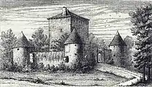 43. Nérée Quépat, Gravure du château de Woippy dans Histoire du village de Woippy, 1878.