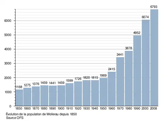 Le graphique suivant résume l'évolution de la population de Wollerau entre 1850 et 2008[3] :