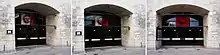 L'œuvre "Screen" fixée sur le centre culturel adjacent à la maison communale de Woluwe-Saint-Pierre. Un autocollant avec une photo d’œil est collé sur la baie vitrée et une dalle de verre rouge est suspendue devant. En fonction de la position du visiteur celui ci verra l’œil ouvert ou fermé.