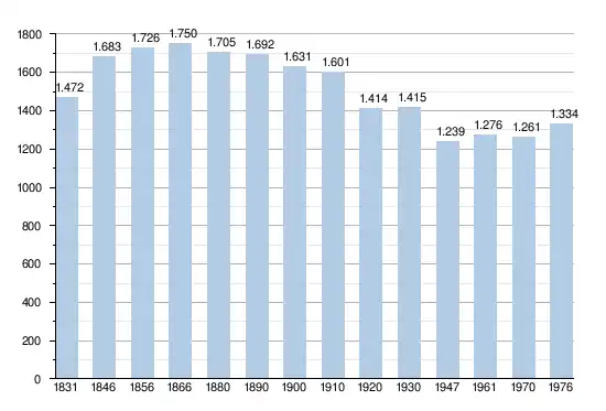 - Sources:INS, Rem:1831 jusqu'en 1970=recensements, 1976= nombre d'habitants au 31 décembre
