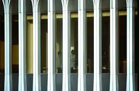 - (en) « just glass-and-metal filing cabinets », cité par Alden Whitman dans « Mumford Finds City Strangled By Excess of Cars and People », The New York Times, 22 mars 1967.