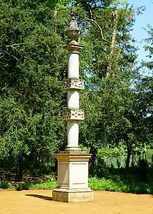 Il y a une colonne commémorative dédiée à Lancelot "Capability" Brown. Elle est à l'origine placée près de la Bowling Green House, qui est remodelé par Batty Langley en 1735, mais se trouve maintenant dans la partie est des jardins. La colonne porte l'inscription: "Ces jardins, initialement aménagés par Henry Duke of Kent, ont été modifiés par Philip Yorke (2e comte de Hardwicke) et Jemima, Marquise Grey avec l'assistance professionnelle de Lancelot Brown dans les années 1758, 1759, 1760".