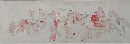- Cinq cents arhat,un rouleau portatif , encre et couleur claire sur papier.
